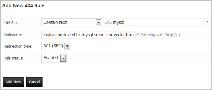 Using 404 rules, you can specify how the 404 Error pages treated, here we will see one rule type only as a test.