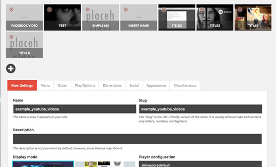 - full of choices – set up single videos, gallery of hand picked videos, gallery of mixed video types – youtube / dailymotion / selfhosted / audio files / images / vimeo / etc. , gallery of a youtube user channel, gallery of a vimeo user channel, gallery of a vimeo album, gallery of a youtube playlist etc.