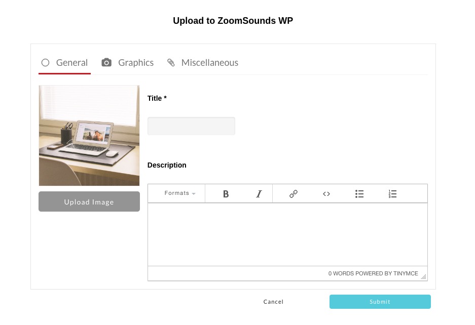 Featuring a WYSIWYG editor with instant preview, the uploader makes it easy for visitors to add tags, graphics, title and other track data.