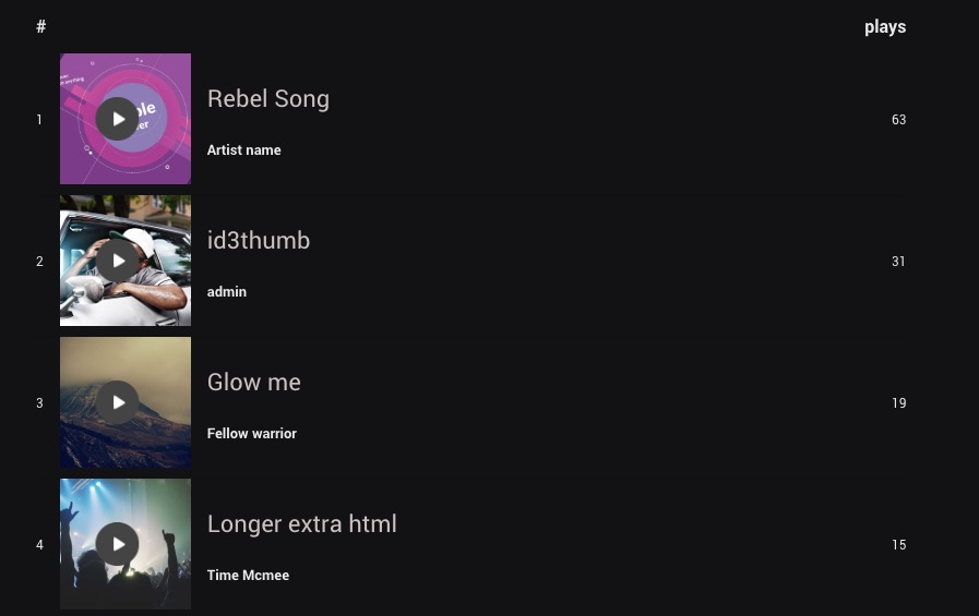 Create a top with your contributors most popular songs. This will further engage both visitors and contributors into the platform. Visitors by having easy access to top content, and contributors to compete in the top charting.