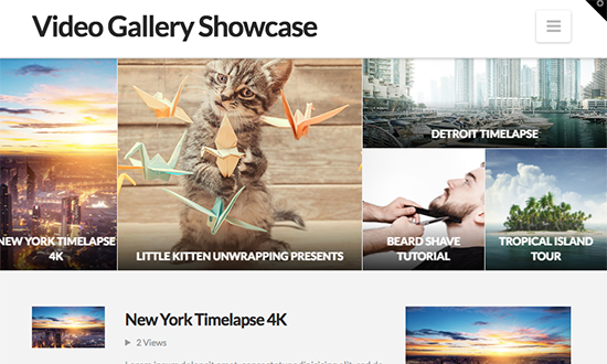 Video Gallery is a plugin that not only offers the standard gallery views . It also offers display modes for a video showcase / portal site. It offers list / wall / grid / custom layout views for the videos, ordered by likes or date.