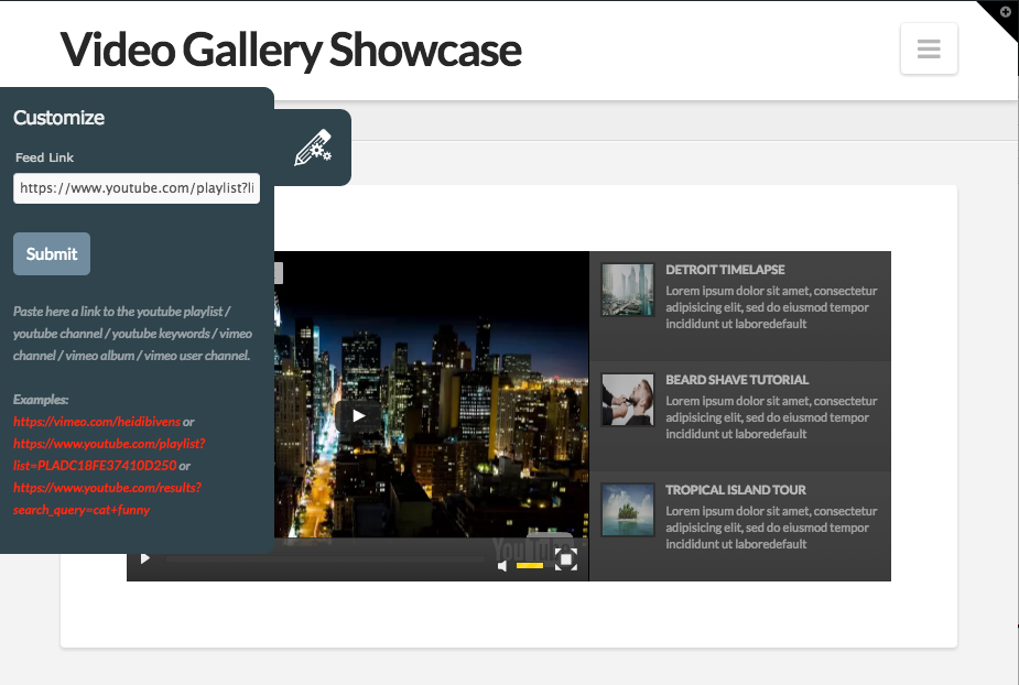 You can use the customizer in the link below to input your own youtube playlist / channel to test.