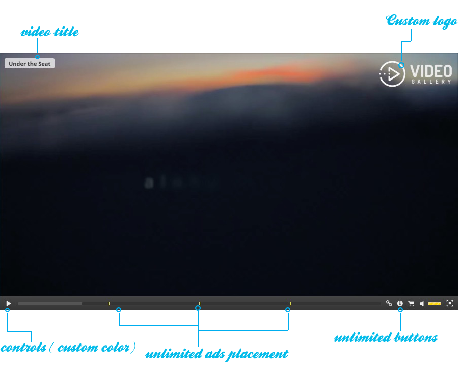 Video Gallery lets you place adverts on your videos at any time - start of video, half of video, end of video - does not matter. These ads will not be detected by ad blocking softwares - it can be video ads, image ads or iframe ads.