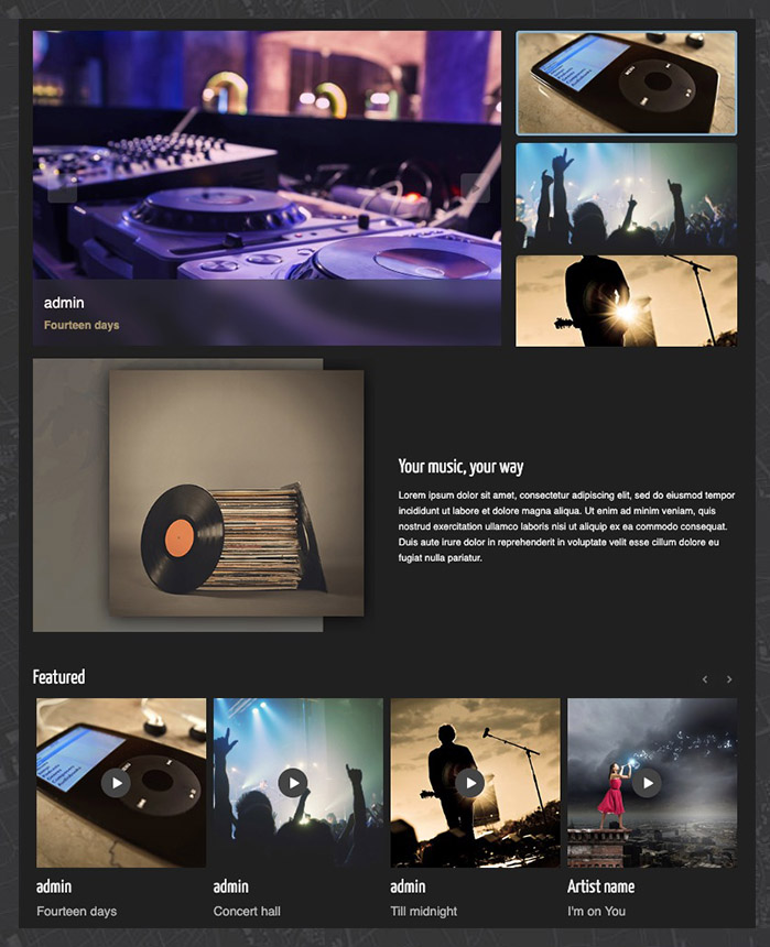 showcase your featured tracks with a cool slider with thumbnails to the right. users will get engaged and will be able to listed to tracks on the fly in the sticky player