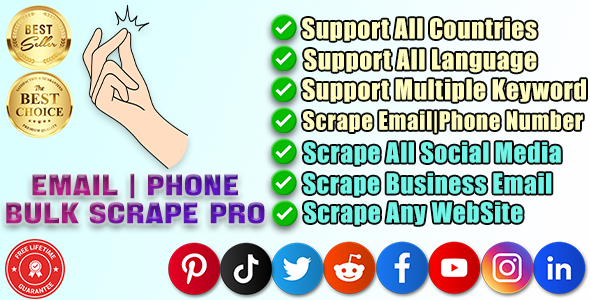 Emails|Phones|Any Bulk Scrape & Extractor Pro is a powerful tools to extract emails & phones from google search results based on your keywords.